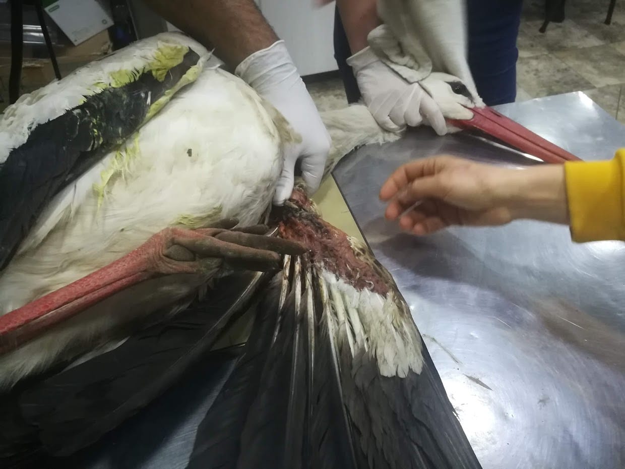 Сегодня аиста прооперировали. Изрешечённое крыло не удалось спасти. Если обеспечить нормальные условия, птица с оседлым образом жизни сможет продолжать жить и на земле.