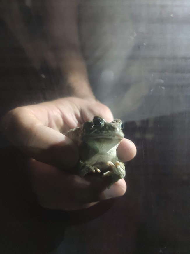 Ночью в дом запрыгнула лягушка. Самое для неё подходящее место, я считаю. С двумя кровожадными убийцами - Микки Мук и Каюком. Ужина не произошло, лягушку благополучно выдворили и отнесли на безопасное от самой-самой нашей убийцы Динджик место.